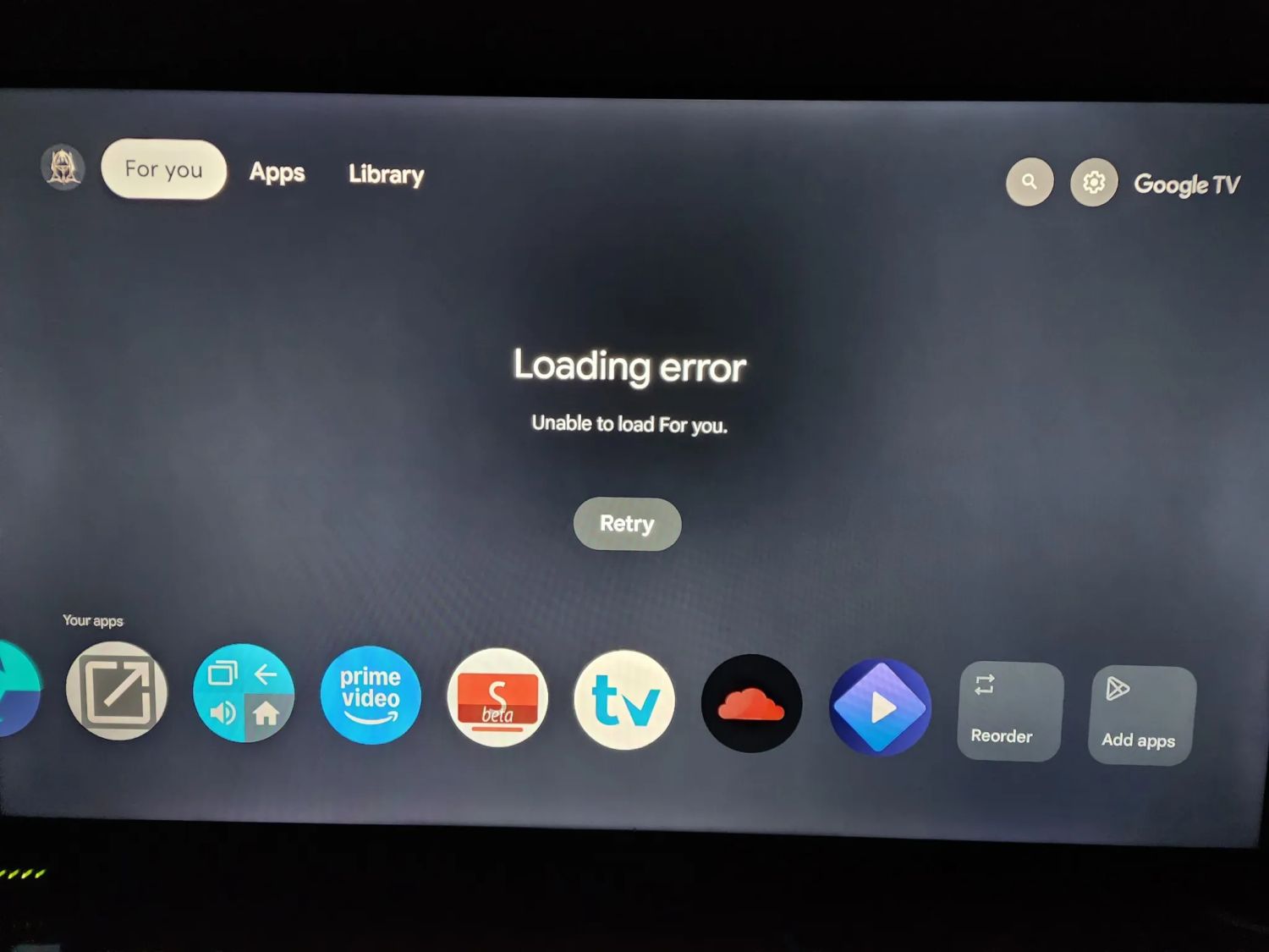 Die Google TV-Startseite besteht hauptsächlich aus kategorisierten Medienvorschlägen, Werbeanzeigen sowie der Auflistung der lokal verfügbaren Apps. Bei einigen Nutzern war bis auf Letztes in den letzten Tagen allerdings nicht außer einer Fehlermeldung zu sehen. In dieser heißt es, dass die „Für dich“-Seite nicht geladen werden konnte und man dies mit einem Klick auf den Wiederholen-Button noch einmal versuchen könnte. Das war natürlich erfolglos.