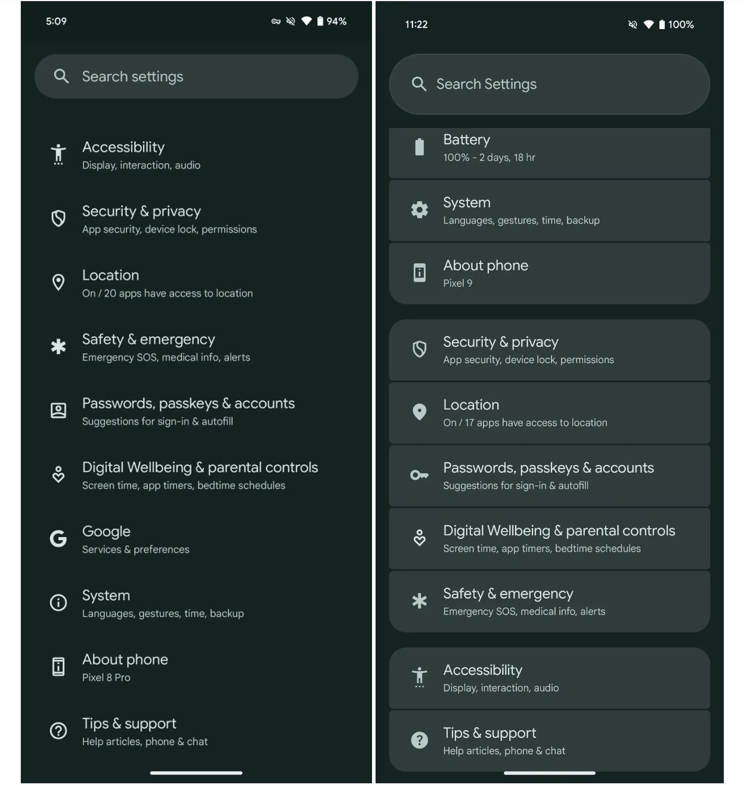 Android 15: Neue Oberfläche für die Einstellungen zeigt sich – veränderte Sortierung und Design (Screenshots)