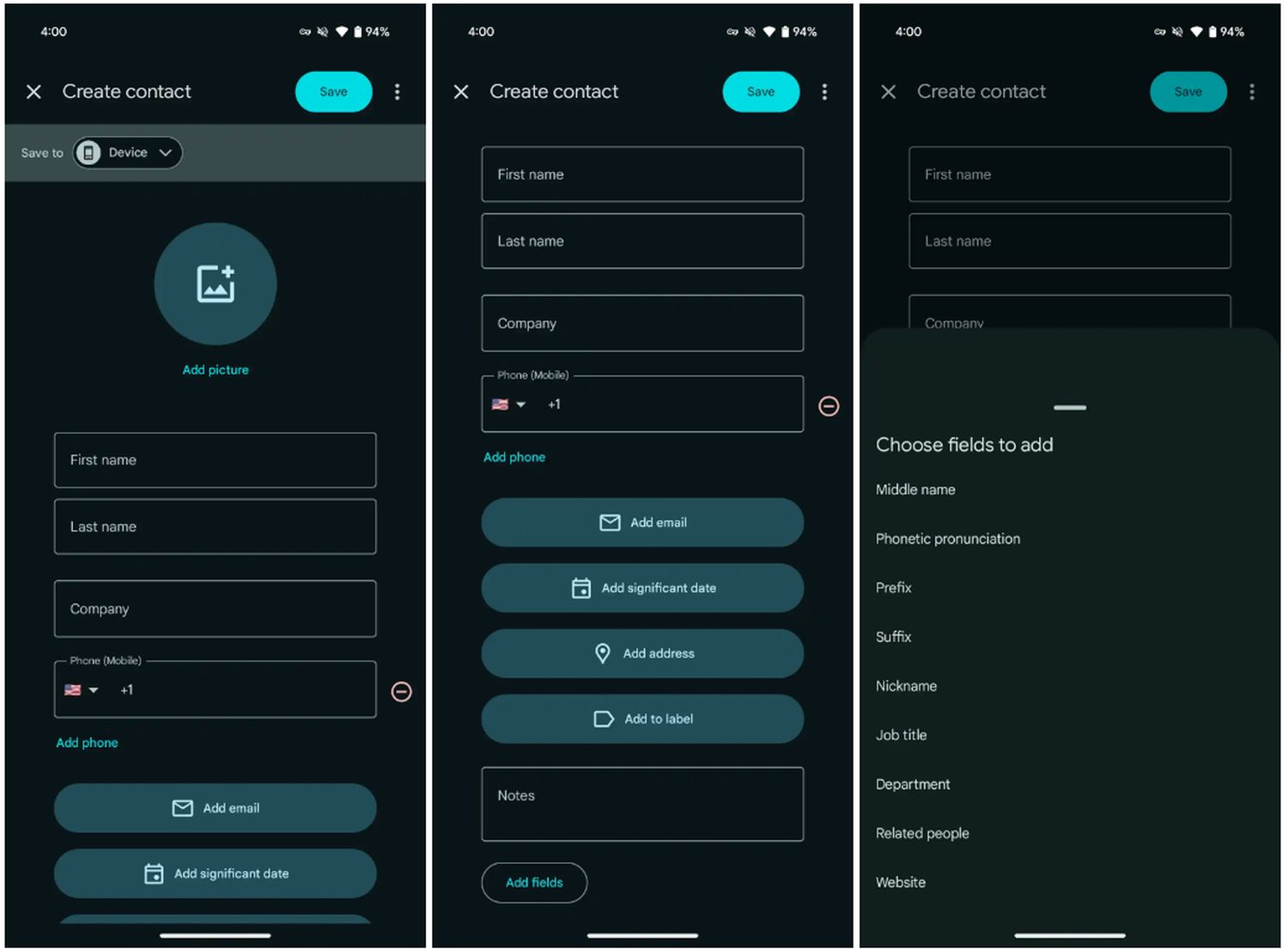 Android: Google Kontakte erhält neue Oberfläche für das Hinzufügen neuer Kontakte und Details (Screenshots)