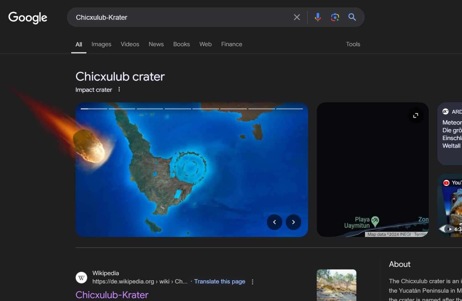 Meteoriteneinschlag in der Google Websuche: Bisher kaum bekanntes Easteregg für den Chicxulub-Krater