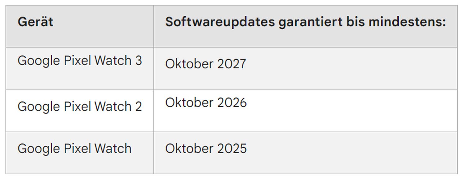 Die Pixel Watch ist in der dritten Generation angekommen und hat so manche Schwachstelle der beiden Vorgänger behoben, doch an einer Baustelle hat man nach wie vor keine Änderungen vorgenommen – nämlich bei der Dauer der garantierten Wear OS-Updates. Wie das Unternehmen jetzt im offiziellen Support-Dokument verraten hat, wird auch die Pixel Watch 3 mit drei Jahren Software-Updates versorgt. Das bedeutet für die dritte Generation, dass diese bis Oktober 2027 Aktualisierungen erhalten wird.
