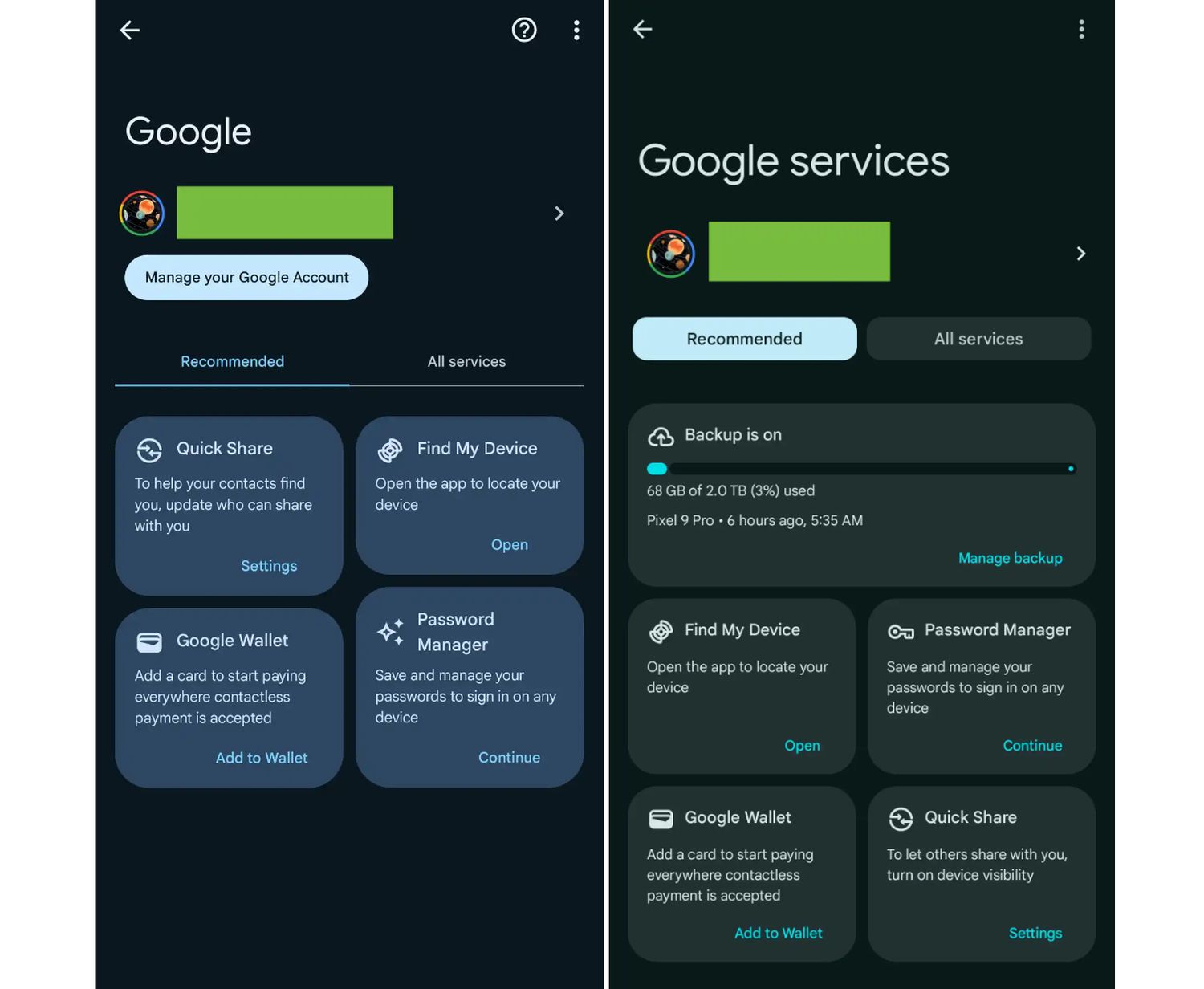 Erst vor wenigen Tagen haben sich die neuen Android-Einstellungen gezeigt, die sowohl das Erscheinungsbild als auch die Anordnung der Optionen rund um das Betriebssystem verändern. Neben den sichtbaren Design-Veränderungen mit separierten Bereichen ist außerdem aufgefallen, dass die Google-Einstellungen ganz nach oben gewandert sind. Es war daher zu erwarten, dass auch diese im Zuge dessen ein neues Design erhalten werden und jetzt zeigt sich genau ein solches auf ersten Screenshots.