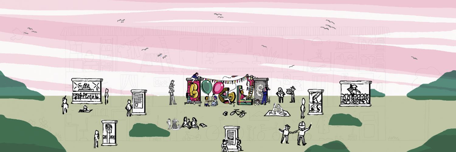 Der Tag der Deutschen Einheit ist ein Tag, an dem Ost- und Westdeutsche über ihre hart erkämpfte Wiedervereinigung nachdenken. Das Doodle-Kunstwerk zeigt die Gemeinschaft, die zusammenkommt, um die Einheit zu feiern und an die gemeinsame deutsche Geschichte zu erinnern.
