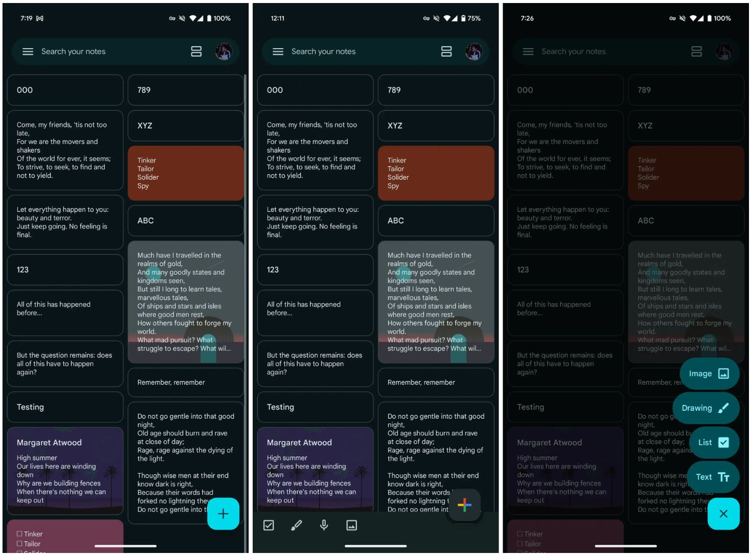 Google Keep: Notizen-App verliert Navigationsleiste – neuer FAB lässt Inhaltstypen wählen (Screenshots)