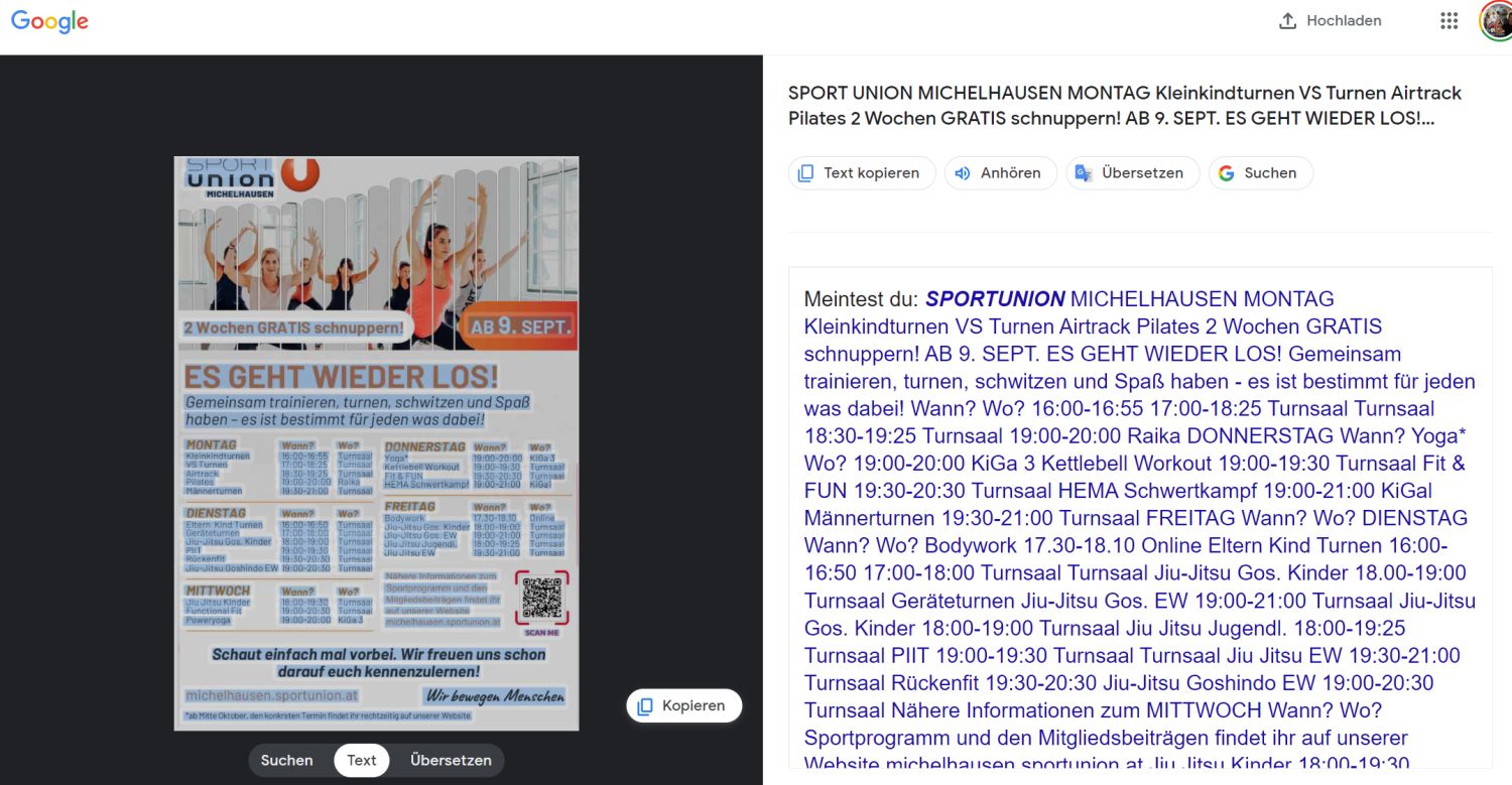 Eine OCR-Texterkennung ist für starke KI-Tools und Bildanalysen heute keine große Herausforderung mehr und funktioniert daher weitgehend zuverlässig. Unzählige Tools jeglicher Qualität bieten eine solche Text-in-Bild oder Text-aus-Bild-Umwandlungen für alle Plattformen an, aber wenn man so etwas einmal schnell braucht, ist es nicht griffbereit. Hier kommt die Google Websuche mit ihrem tief integrierten Tool Google Lens zum Einsatz, das bekanntlich seit Jahren über eine starke Texterkennung verfügt und unterschiedlich mit diesem umgehen kann.