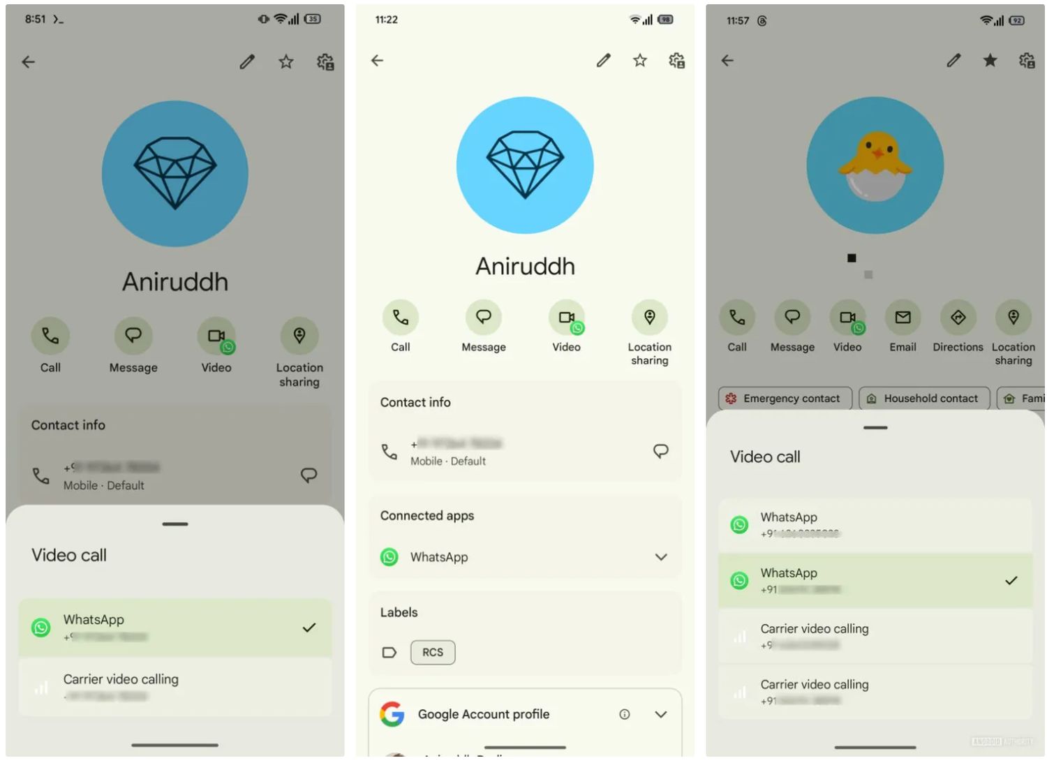 Jetzt zeigt sich im Rahmen eines Teardowns eine neue Möglichkeit, die sehr praktisch sein kann: Ein langer Tap auf den Video-Button öffnet ein neues Menü, in dem die Nutzer eine gewünschte App für die Videotelefonie auswählen können. Das kann dann WhatsApp sein, Google Messages oder andere Apps, die eine solche Möglichkeit bieten. Zur Symbolisierung der Änderung wird nach dem Wechsel das Standard-Icon durch das der ausgewählten App ausgetauscht.