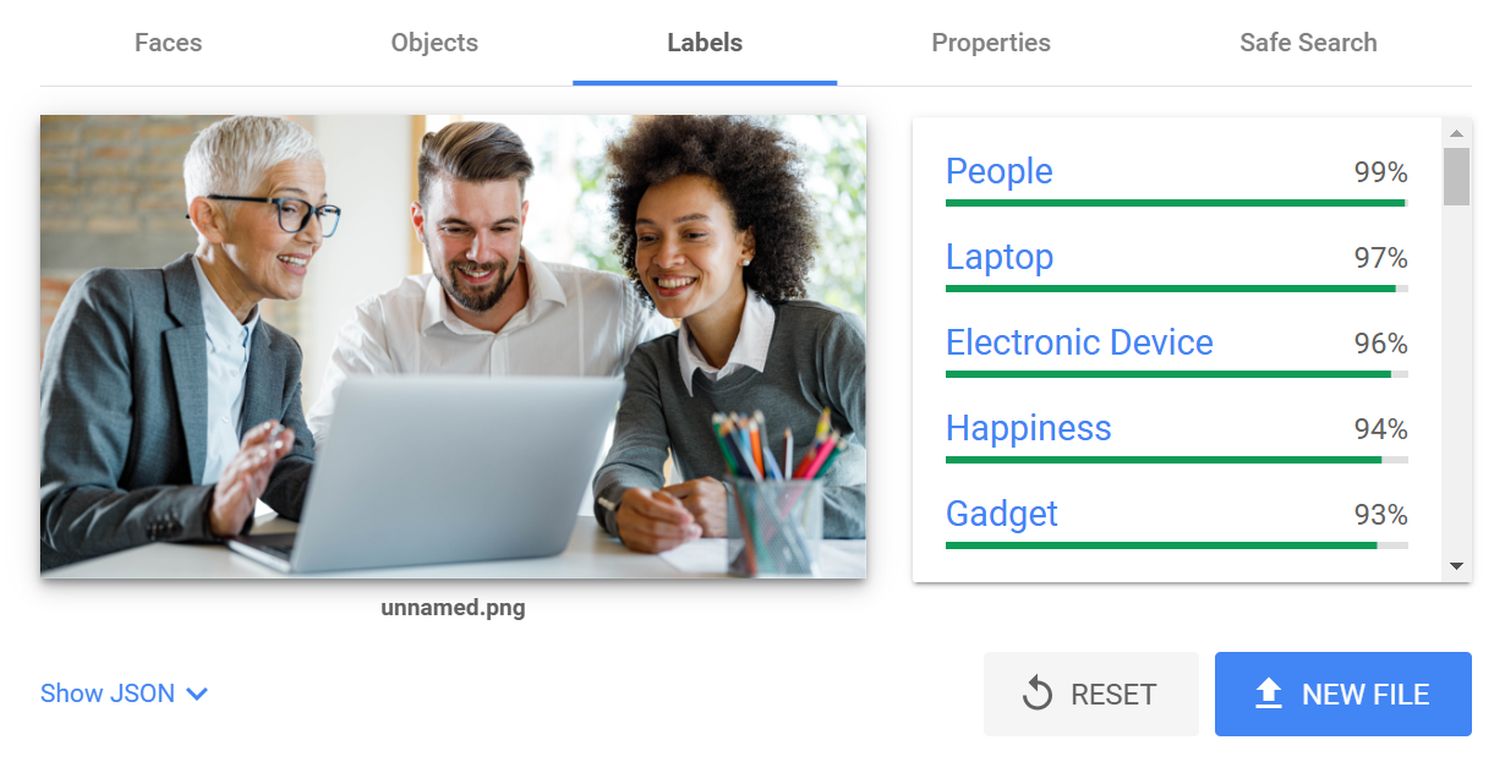Die Label geben an, was auf dem Foto hauptsächlich zu sehen ist und ermöglichen somit eine Art Einstufung des Bildes sowie eine automatische Kategorisierung für Uploads.