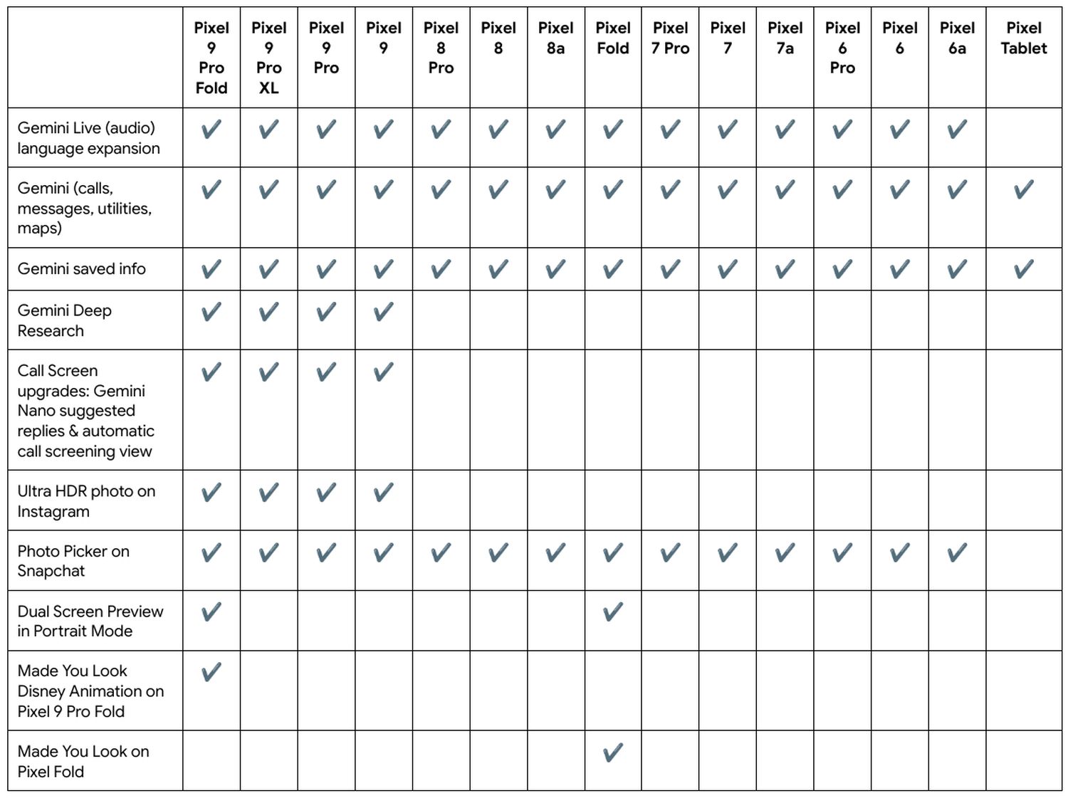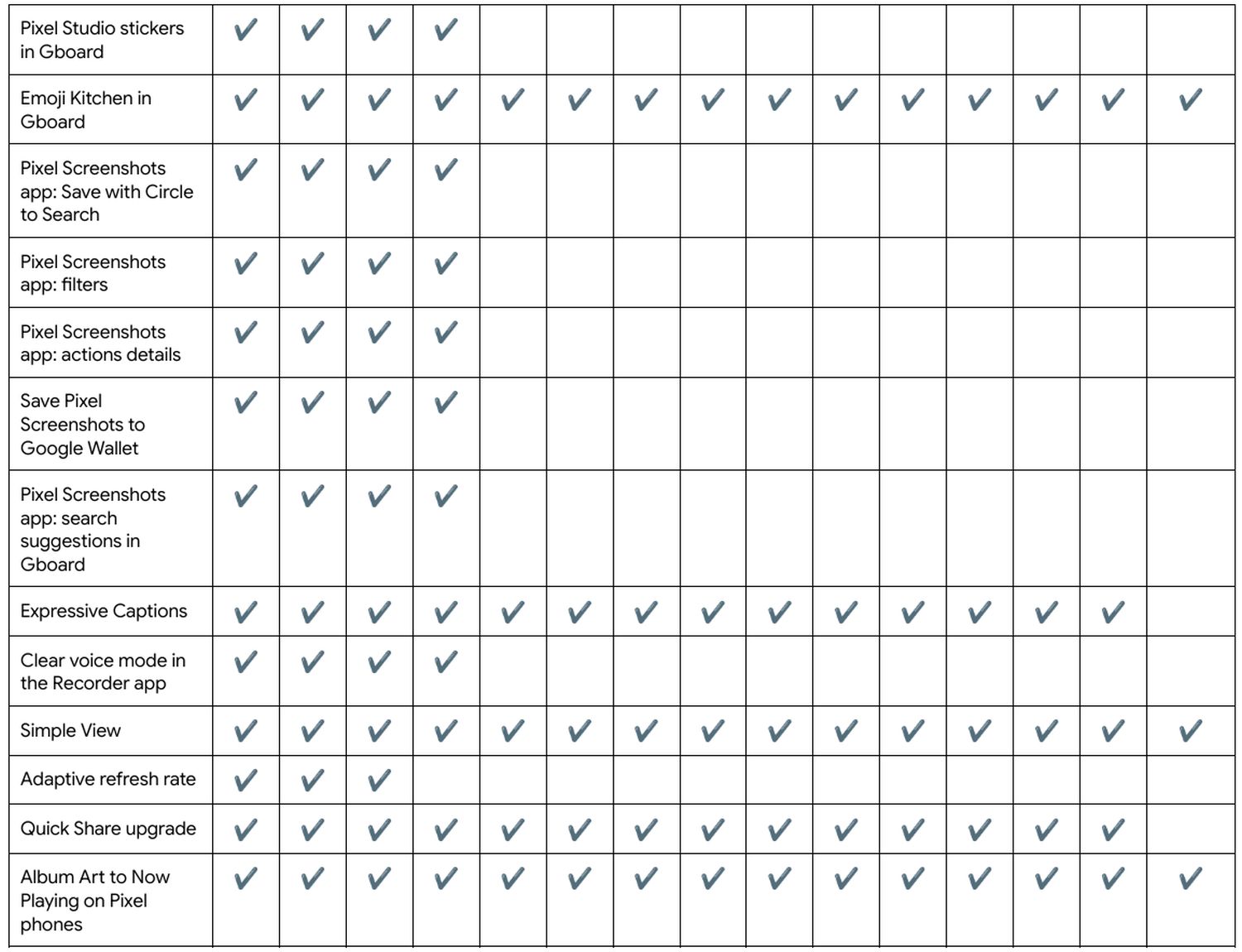 Aber nicht alle Neuerungen kommen auf allen Geräten an. Denn manches ist nur auf der neuesten Pixel-Generation nutzbar. Manches ist ersatzweise auf die älteren Pixel-Smartphones gekommen. Und wiederum anderes startet erst jetzt auf älteren Generationen, stand aber zuvor schon bei neuen Geräten bereit. Um darüber den Überblick zu behalten, hat Googles Pixel-Team jetzt eine simple Tabelle erstellt, an der ihr ablesen könnt, welche Funktionen zu euch kommen und welche nicht. Hier der schnelle Video-Überblick und die Tabelle.