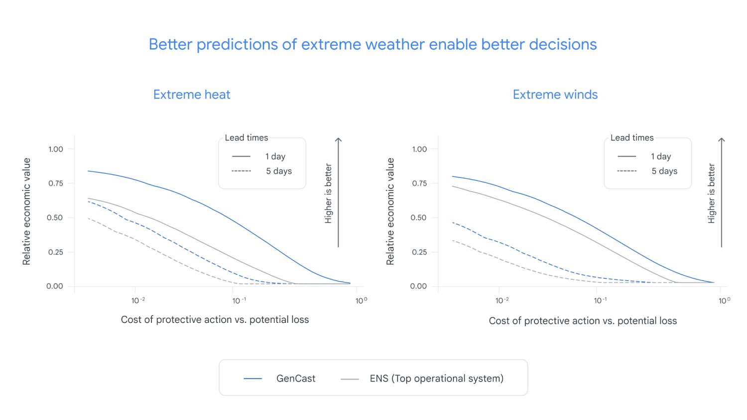 Doch es zählen nicht nur das Ergebnis, der Umfang und die Genauigkeit, sondern für den praktischen Einsatz natürlich auch der Weg dorthin – und das ist abgesehen von den sehr genauen Prognosen das wichtigste Argument für Googles Modell: Dank KI-Einsatz benötigt eine einzige Google Cloud TPU v5 gerade einmal acht Minuten für eine 15-Tages-Prognose, während parallel dazu alle anderen Kurzzeitprognosen erstellt werden. Das bedeutet: Einmal den Startknopf drücken und nach acht Minuten sind alle Ergebnisse da. Bisherige Wettermodelle benötigen mit Supercomputern mit Zehntausenden Prozessoren mehrere Stunden.