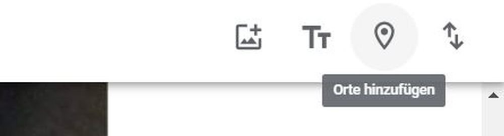 Um ein Fotoalbum mit diesen verfügbaren zusätzlichen Elementen auszustatten, müsst ihr nur zwei einfache Schritte befolgen: Öffnet das Fotoalbum, klickt bzw. tippt auf das Drei-Punkte-Menü in der rechten oberen Ecke und dann auf den Punkt „Album bearbeiten“. Es erscheint eine zusätzliche Leiste am oberen Rand, innerhalb derer sich die beiden einzufügenden Elemente befinden. Interessant für diesen Artikel sind die beiden Punkte „Texte hinzufügen“ und „Orte hinzufügen“.