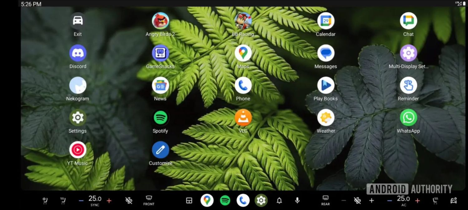 In einer deutlich erweiterten Leiste am unteren Displayrand wird Android Auto die Möglichkeit bieten, die Klimaanlage des Fahrzeugs zu steuern. Sowohl die Temperatur als auch zwei Zonen werden unterstützt, außerdem die Aktivierung der Scheibenheizung vorne und hinten sowie die Steuerung der Sitzheizung oder bei Vorhandensein auch der Sitzkühlung. Alle Funktionen sind am unteren Rand links und rechts von den wenigen Icons für das Starten von Apps positioniert.
