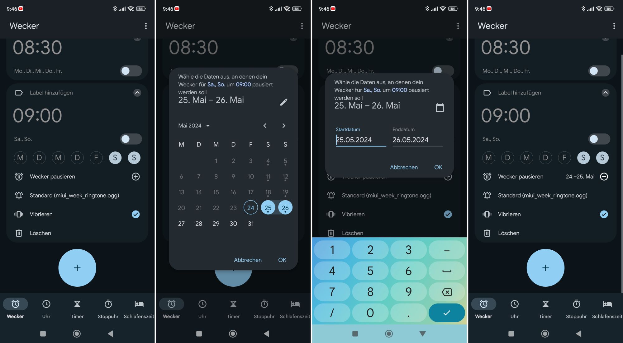 Der Wecker bleibt weiterhin aktiviert und wird am Ende dieser Pause wieder zuverlässig läuten. Das ist nicht nur für Ferien und Urlaub praktisch, sondern auch für Feiertage oder andere Ausnahmefälle, für die man den Wecker nicht vollständig deaktivieren oder dessen Regeln ändern möchte.