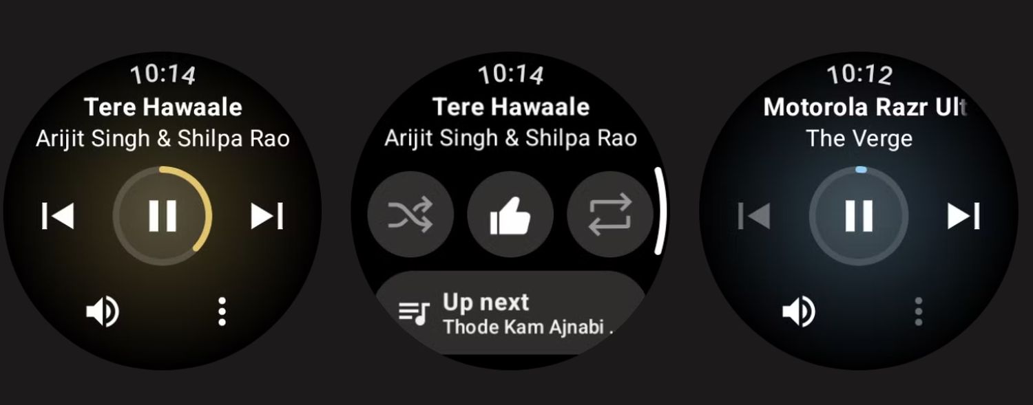 Die neue Medienplayer-Oberfläche für WearOS auf der Pixel Watch bringt zusätzliche Möglichkeiten. Es kommen neuen Optionen für die Playlisten hinzu, mit denen die Wiederholung eines Titels oder der gesamten Liste sowie die Zufallsfunktion gesteuert werden kann. Außerdem gibt es eine weitere Karte an der Oberfläche, die über den nächsten Titel informiert. So wisst ihr direkt, welcher Song als Nächstes folgen wird. Zusätzlich kann für den aktuell abgespielten Titel ein Daumen nach oben vergeben werden.