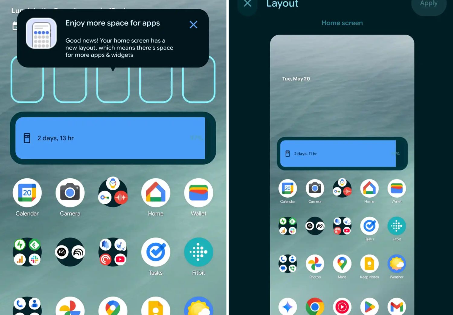 Der Homescreen im Pixel Launcher erhält neue Gittergrößen, sodass die Nutzer bei Bedarf noch mehr App-Icons und Widgets unterbringen können.