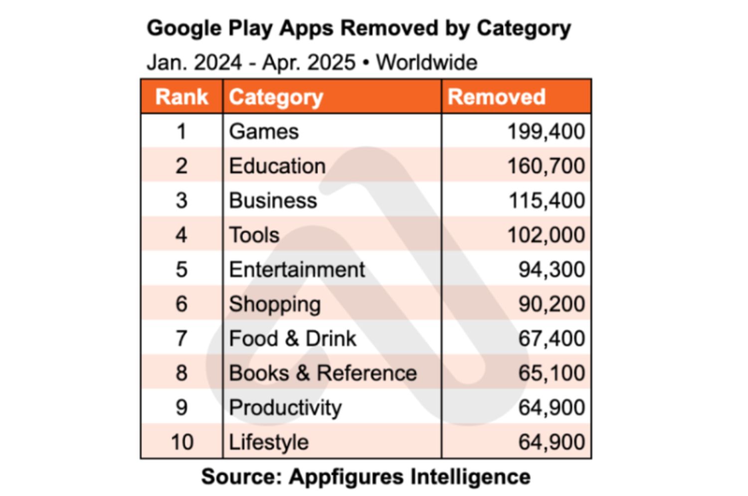 In obiger Tabelle ist zu sehen, aus welchen Bereichen die Apps stammten, die verlorengegangen sind. Fast 200.000 Spiele ohne nennenswerte Funktion sind schon eine Hausnummer…
