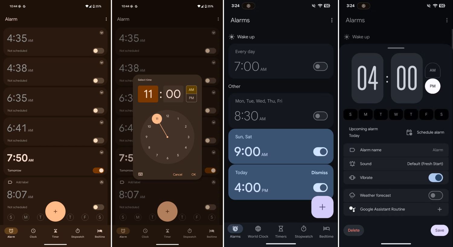 Wir haben euch bereits das neue Android 16-Design und die neuen Android 16-Animationen gezeigt, das auf vielen Screenshots und Videos zu sehen war. Je nach Version, Smartphone oder persönlichen Einstellungen kann so manche Änderung schwer nachvollziehbar sein, sodass Vorher-Nachher-Fotos den direkten Vergleich erleichtern. Jetzt gibt es diese für die Android-App der Google Uhr. Auf den folgenden Screenshots ist das leicht zu sehen.