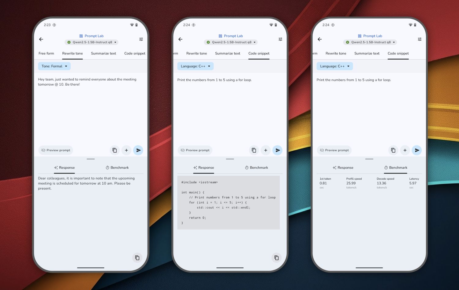 Die App Gallery deckt derzeit die Bereiche „Ask Image“, „Prompt Lab“ sowie „AI Chat“ ab, hinter denen sich verschiedene KI-Modelle verbergen. Diese können in der App ausgewählt werden, bei Interesse heruntergeladen werden und lassen sich anschließend in ihren Fachbereichen auf dem Smartphone nutzen. Für jedes Modell lässt sich noch vor der Ausführung festlegen, wie viele Tokens und Rechenpower diese verwenden dürfen. Stellt ihr alle Werte auf Anschlag, kann das auch das Smartphone enorm zum Schwitzen bringen, sodass selbst innerhalb der App ein Überhitzungsschutz integriert ist.
