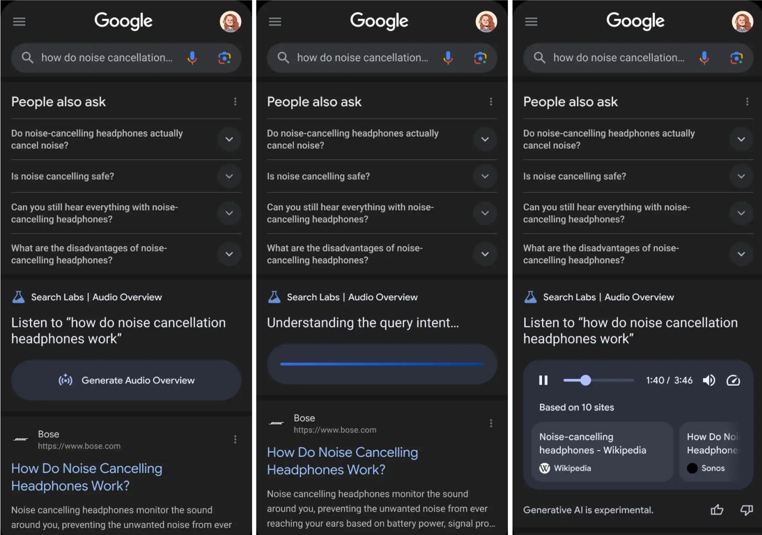 Das neue Feature wird derzeit mit einer Reihe von Nutzern getestet, ist aber noch nicht offiziell. In diesem Fall würde ich auch nicht darauf wetten, dass das tatsächlich für alle Nutzer ausgerollt wird. Denn während man bei NotebookLM gezielt einen solchen Podcast von 10 bis 15 Minuten Länge erstellt, haben es die Websucher vielleicht etwas eiliger und würden schon nach wenigen Sekunden wieder abschalten. Daher ist zumindest der Podcast auf den Screenshots auch nur unter vier Minuten lang. Aber warten wir es mal ab.