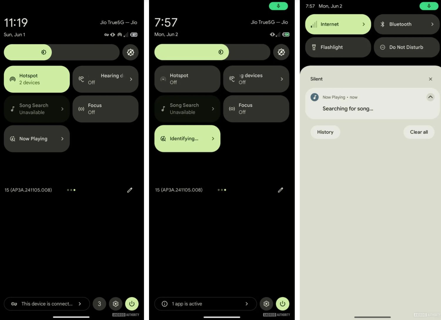 Nachdem die Entwickler diese Funktion durch ein Bugfix der Musikerkennung endlich wieder entdeckt haben, steht jetzt ein Update vor der Tür, das von ersten Nutzern bereits aktiviert werden konnte. Das Update bringt einen neuen Button in die Schnelleinstellungen und ermöglicht es, die Musikerkennung sofort zu starten. Dafür gibt es keine eigene Oberfläche, sondern die Visualisierung der Erkennung findet direkt im Button der Schnelleinstellungen statt. Außerdem gibt es eine Benachrichtigung über einen möglichen erfolgreichen Fund.
