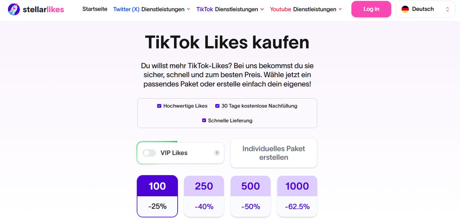 | Stellarlikes | 1,28 € | 5-15 min | Echte Likes, schnelle Lieferung, 24/7-Support | stellarlikes.com |