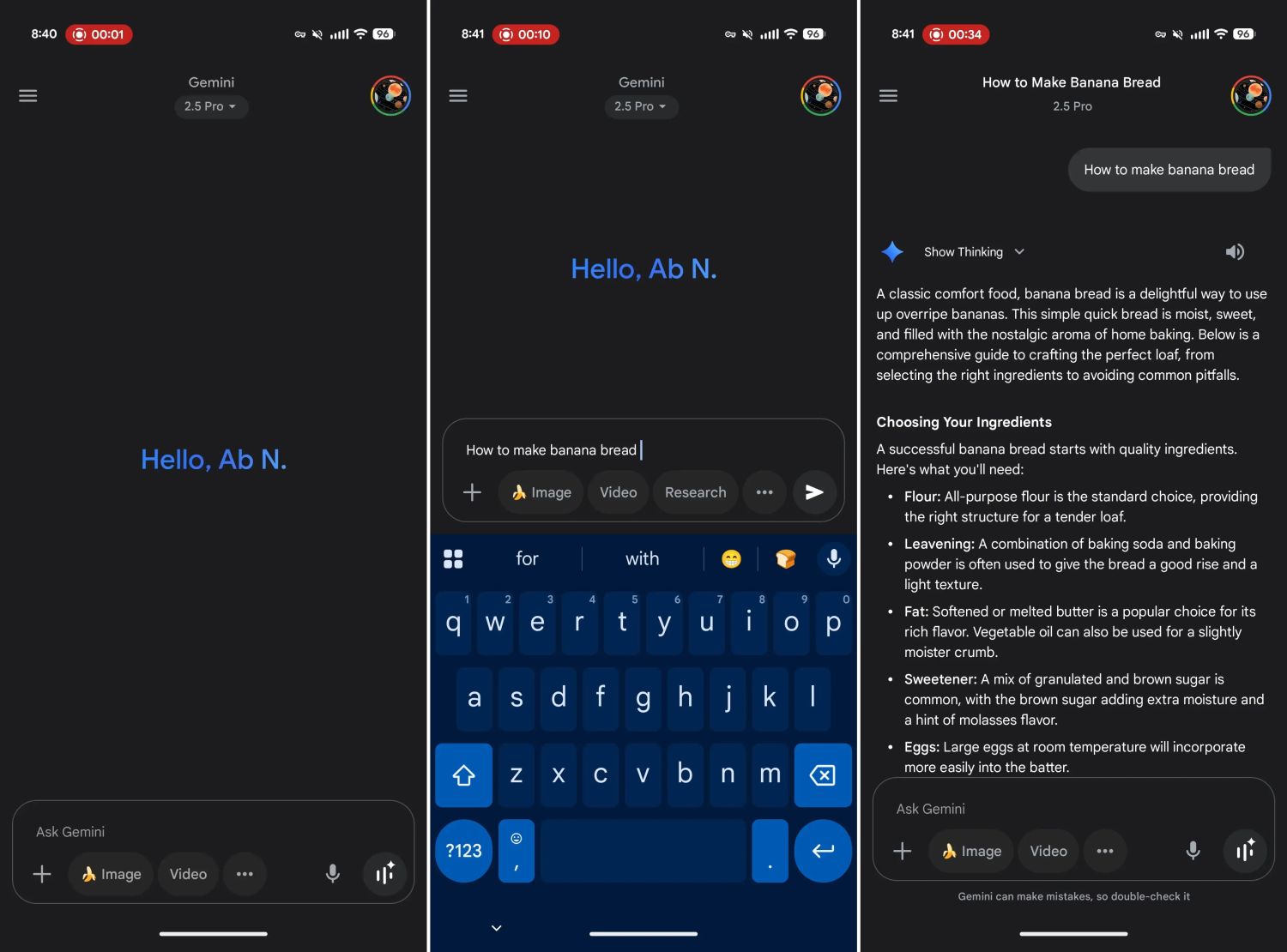 Die Oberfläche von Gemini für Android hat sich seit dem Start der App mehrfach verändert, sollte sich nun aber langsam festigen und eher kleinere Schritte machen. Jetzt gehen die Designer einen solch kleinen Schritt, der mit nur wenigen Änderungen mehr Platz für die Inhalte schafft, mehr Platz für die Bedienelemente und auch die Struktur trotz fehlender Umrandung klarer als bisher unterstreicht. Auf obigen Screenshots seht ihr die alte und auf den folgenden Bildschirmfotos die neue Variante.