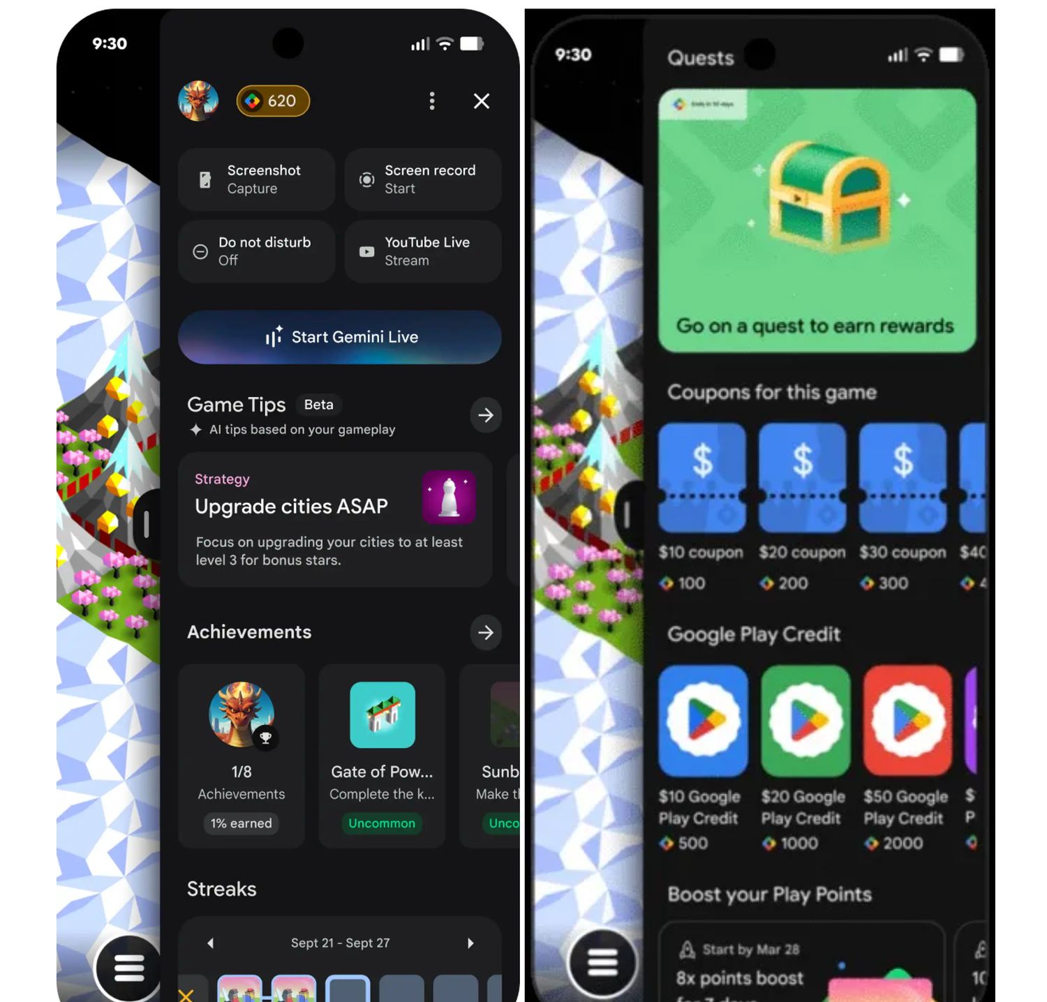 Google Play Games & Gemini: Neue Sidekick-Leiste mit KI-ChatBot, Tipps und Funktionen für Android-Spiele