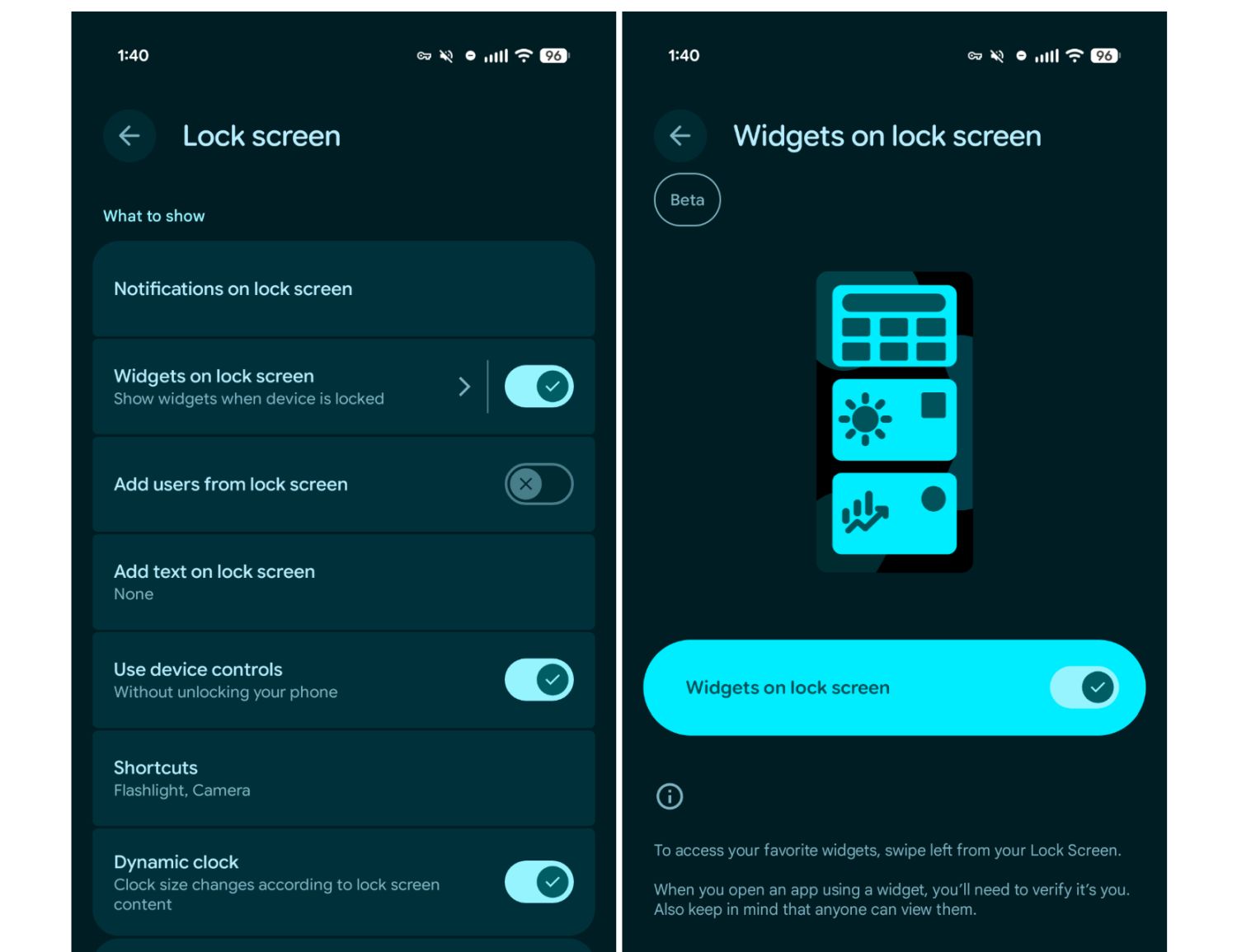Für die Widgets auf dem Sperrbildschirm lässt sich jetzt nicht mehr festlegen, unter welchen Umständen sie gezeigt werden sollen. Bisher ließ sich festlegen, dass diese nie gezeigt werden, nur beim Aufladen oder nur beim aufrechten Aufladen (also auf einer Dockingstation).