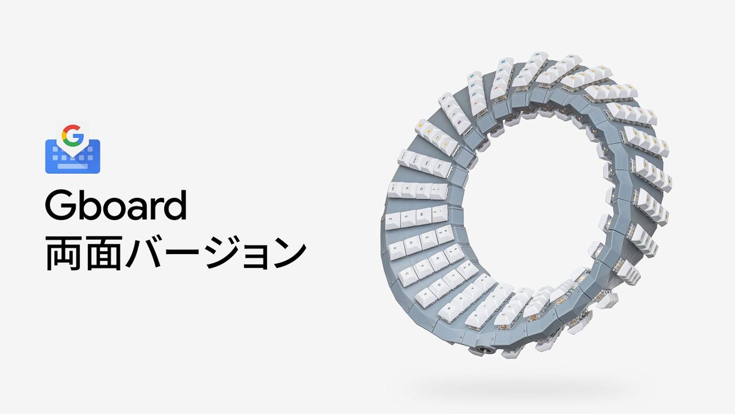 Offenbar ist man im Gboard-Team in Japan der Meinung, dass moderne Tastaturen zu wenige Tasten haben und damit viel Potenzial ungenutzt lassen. So hat man nach einiger Überlegung eine Tastatur entworfen, die nicht mehr die klassische Rechteck-Form hat, sondern kreisrund ist, in Form einer Möbiusschleife einmal in sich selbst gebogen ist und aufgrund der Drehung und Haltung die Tasten auf beiden Seiten platziert.
