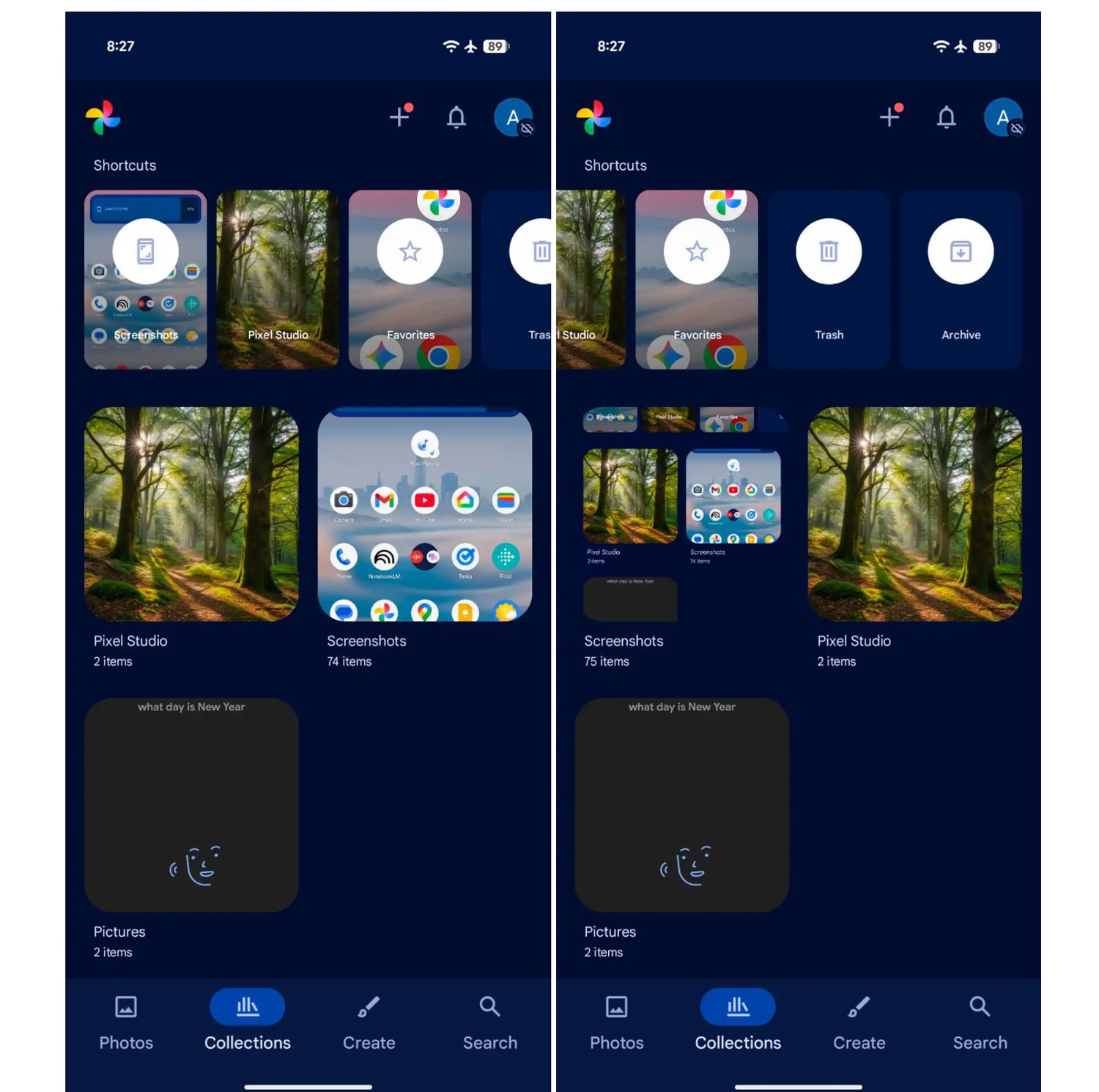 Google Fotos verfügt zwar über eine recht simple Organisation, die aber gerade unter Android nicht immer ganz so einfach nachzuvollziehen ist. So finden sich etwa die lokalen Ordner sowie die speziellen Ansammlungen für die Favoriten und den Papierkorb direkt über der Fotosammlung mit allen anderen Alben. Bisher wurden diese speziellen Bereiche in einem 2×2-Gitter gezeigt, so wie ihr das auf obigem Screenshot sehen könnt. Jetzt zeigt sich bei vielen Nutzern eine Änderung.