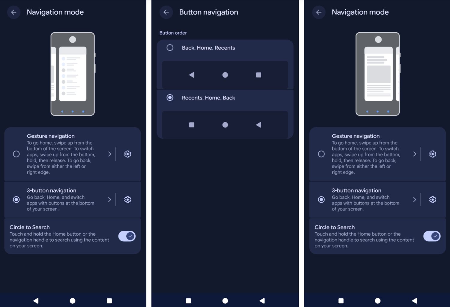 Mit Android 16 QPR3 Beta 1 zieht jetzt endlich die Möglichkeit ein, die Reihenfolge der Buttons in den Einstellungen festzulegen. Das ist recht einfach umgesetzt, wie ihr den obigen Screenshots entnehmen könnt. Die Auswahl ist möglich, wenn die klassische Button-Navigation aktiviert ist, weitere Varianten gibt es natürlich nicht. Der Wechsel erfolgt sofort und erfordert keinen Neustart. Einen Wechsel des bisher auf Pixel genutzten Standards gibt es ebenfalls nicht.