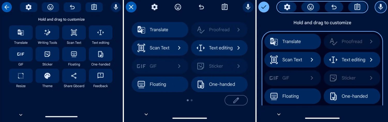 Die Oberfläche der Tastatur-App Gboard bietet seit vielen Jahren eine Funktionsleiste, die von den Nutzern erweitert, verkleinert oder neu organisiert werden kann. Jetzt wird erstmals seit langer Zeit ein neues Design für diese Anpassungsmöglichkeiten ausgerollt, das es vor allem neuen Nutzern erleichtern soll, die gewünschte Funktion zu finden und auszuwählen.