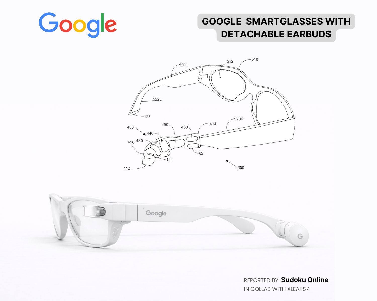 Das Patent zeigt eine smarte Brille mit integrierten Kopfhörern. Diese sind magnetisch am Ende des Brillenbügels befestigt und können somit als Geräteunion gleich zwei Gadgets ersetzen. Es handelt sich derzeit nur um ein Patent und kein reales Konzept, sodass ihr lediglich oben das offizielle Dokument und darunter ein von Sudoku Online erstelltes Mockup sehen könnt. Das finale Produkt – wenn es ein solches geben sollte – kann daher gänzlich anders aussehen.