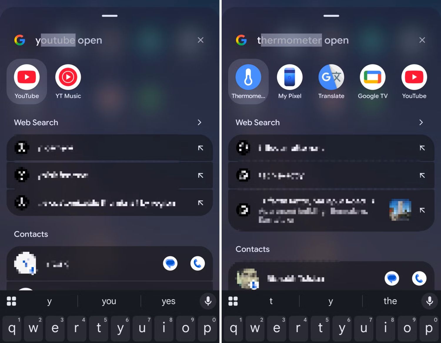 Diese Vorauswahl sorgt dafür, dass mit einem Tap auf die ENTER-Taste der Tastatur-App der Aufruf der App erfolgt. Bislang war es so, dass die Auswahl bei den Suchvorschlägen lag und ein Tap stattdessen eine Websuche ausgelöst hat. Jetzt kann es ausreichen, einfach „y“ auf der Tastatur einzugeben und ENTER zu drücken, um YouTube zu starten – natürlich abhängig davon, welche Apps ihr installiert habt.