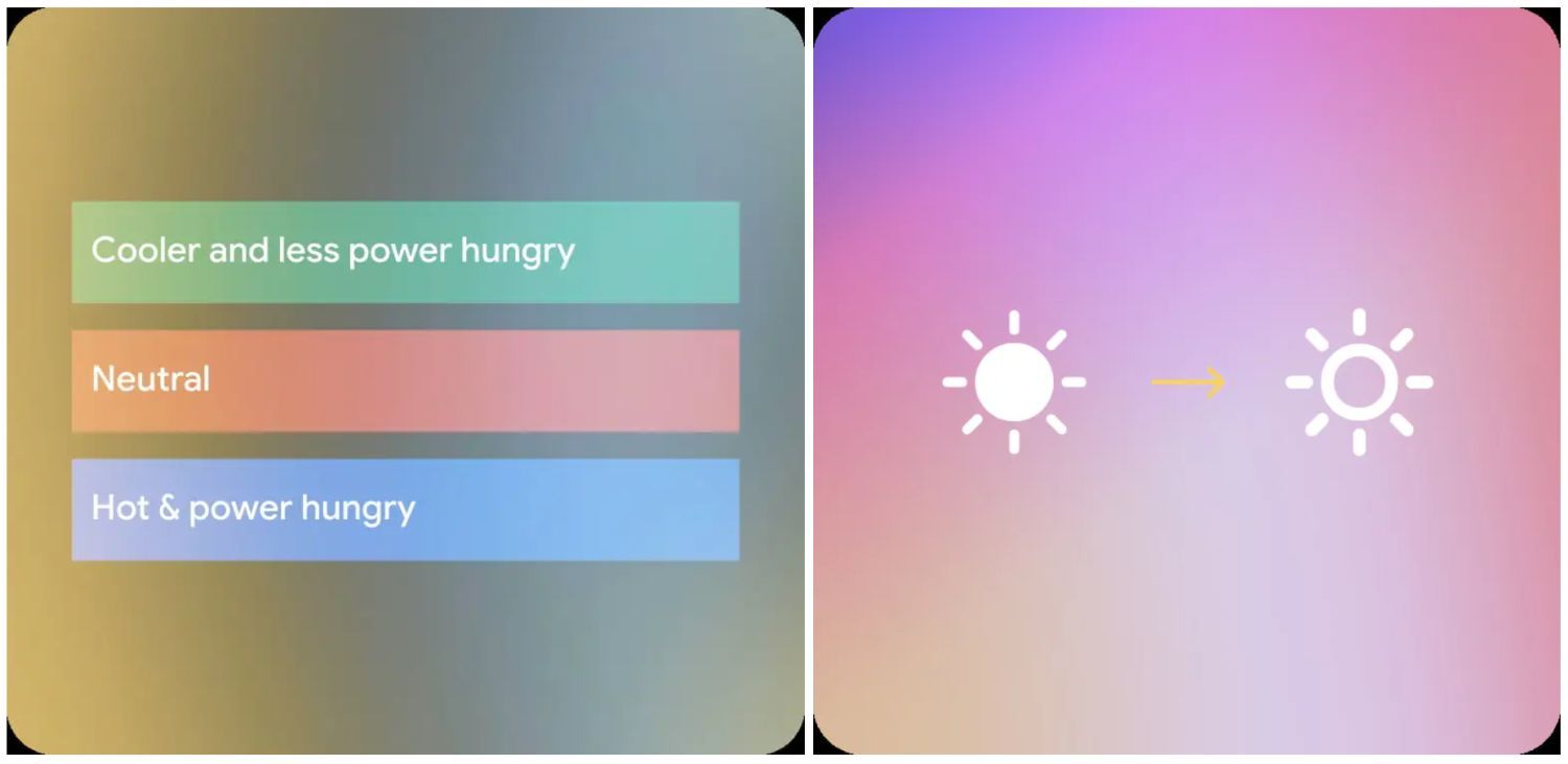 Um die Oberfläche anzupassen, können Nutzer aus einer Reihe von Farbgebungen und Helligkeitsvarianten auswählen. Diese Farben haben nicht nur Einfluss auf die Darstellung und vielleicht – aufgrund der Positionierung direkt vor dem Auge – der eigenen Stimmung, sondern auch auf den Akkuverbrauch der smarten Brillen.