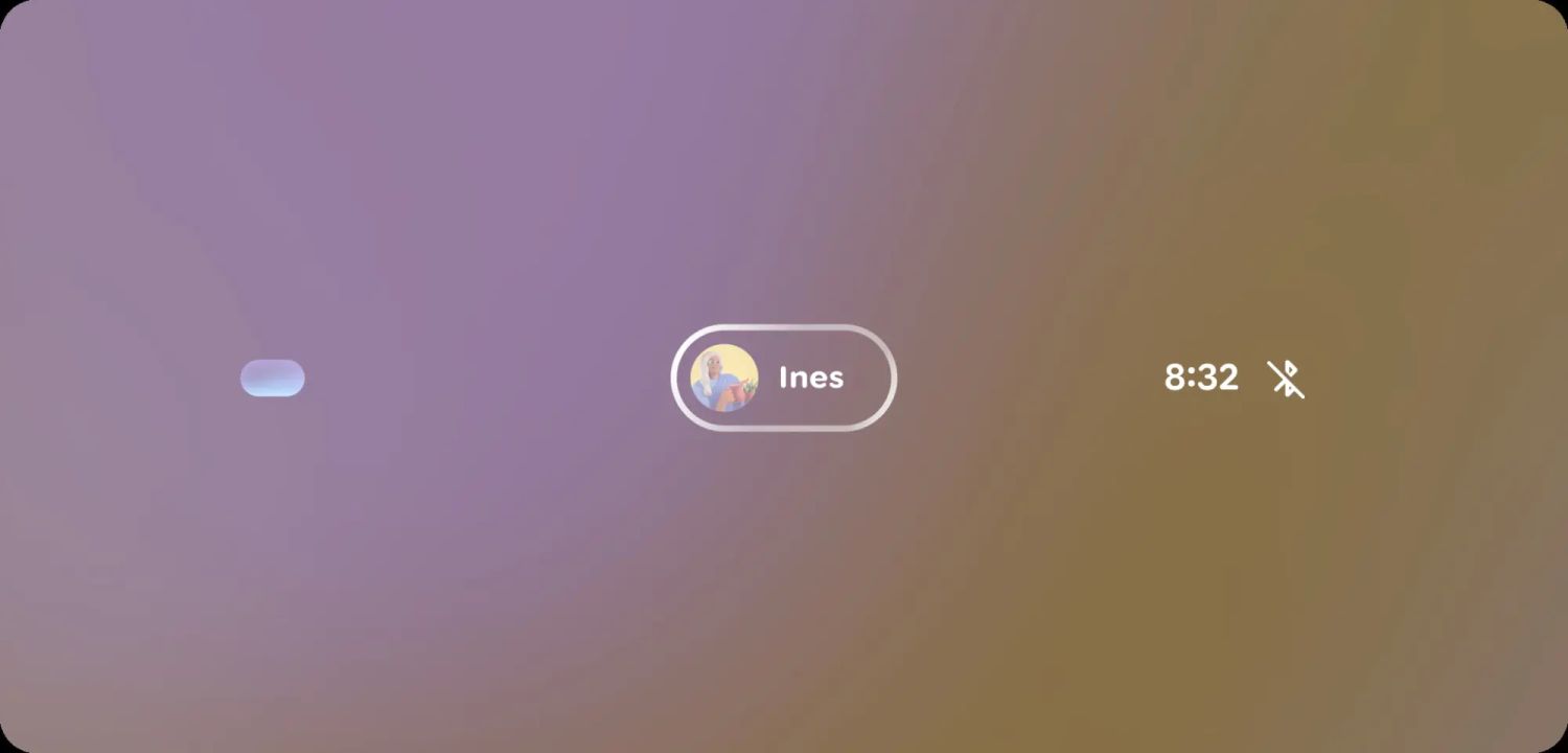 Wenn man so will, ist das der Homescreen von Android XR. Auf diesem können transparente Informationen eingeblendet werden, die soweit wie möglich mit dem Livebild verschwimmen und dennoch gut sichtbar sein sollen. Am unteren Displayrand gibt es eine Statusleiste, die ständig eingeblendet sein soll: Darin befindet sich die Uhrzeit, das Wetter, die Möglichkeit zum Aufruf von Gemini, ein Statushinweis sowie eine Möglichkeit zur Integration von angepassten Verknüpfungen.