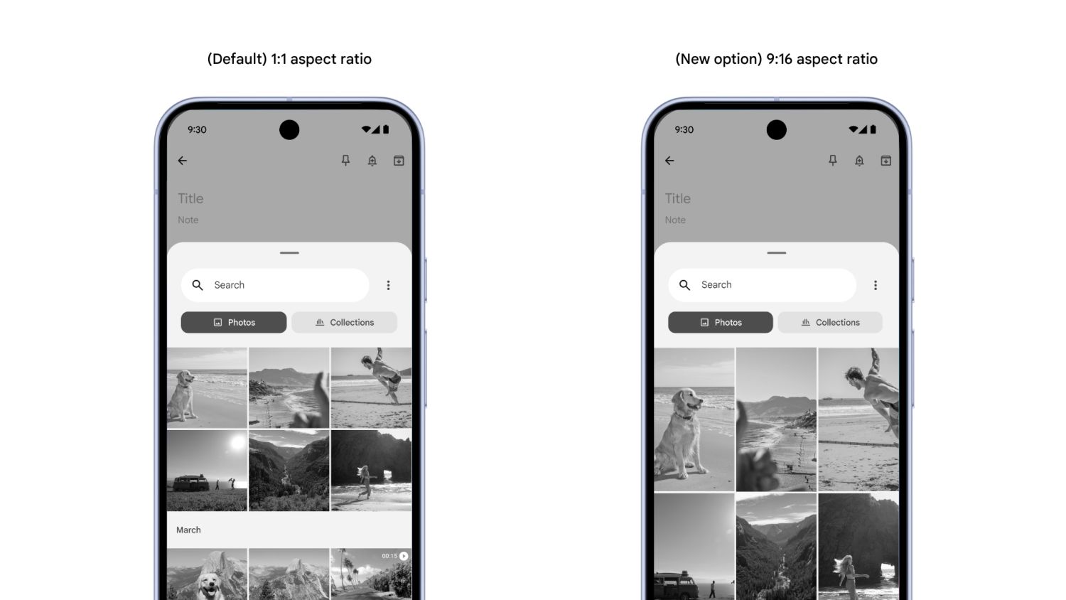 App-Entwickler haben jetzt die Möglichkeit, den Fotopicker visuell so anzupassen, dass Bilder nicht in 1:1 sondern 16:9 dargestellt werden.