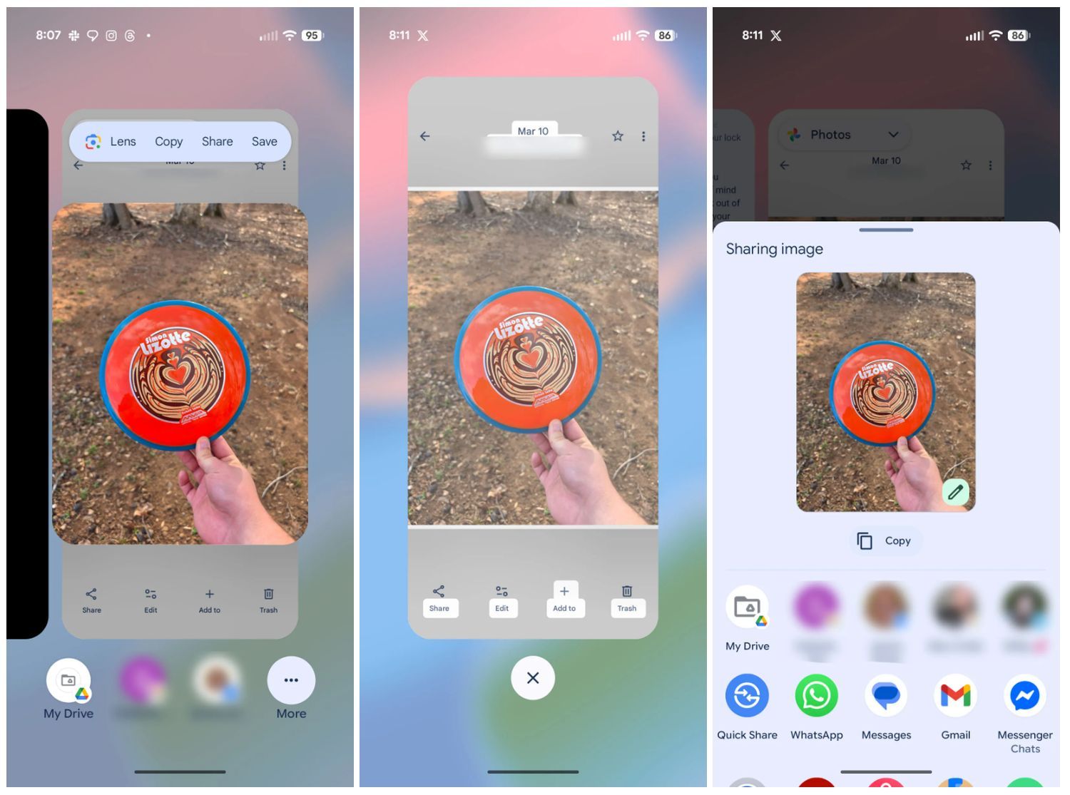 Über das Teilen-Feld lässt sich das Bild auch weiterhin auf alternativen Wegen wie etwa über Google Files oder Google Drive speichern. Das Bild kann aber auch für Google Lens freigegeben werden, um einen möglichen sichtbaren Text zu extrahieren. Rein funktionell ist bei diesen installierten Apps also nichts verloren, doch die Wege werden länger und es geht alles nicht mehr ganz so schnell von der Hand wie bisher.