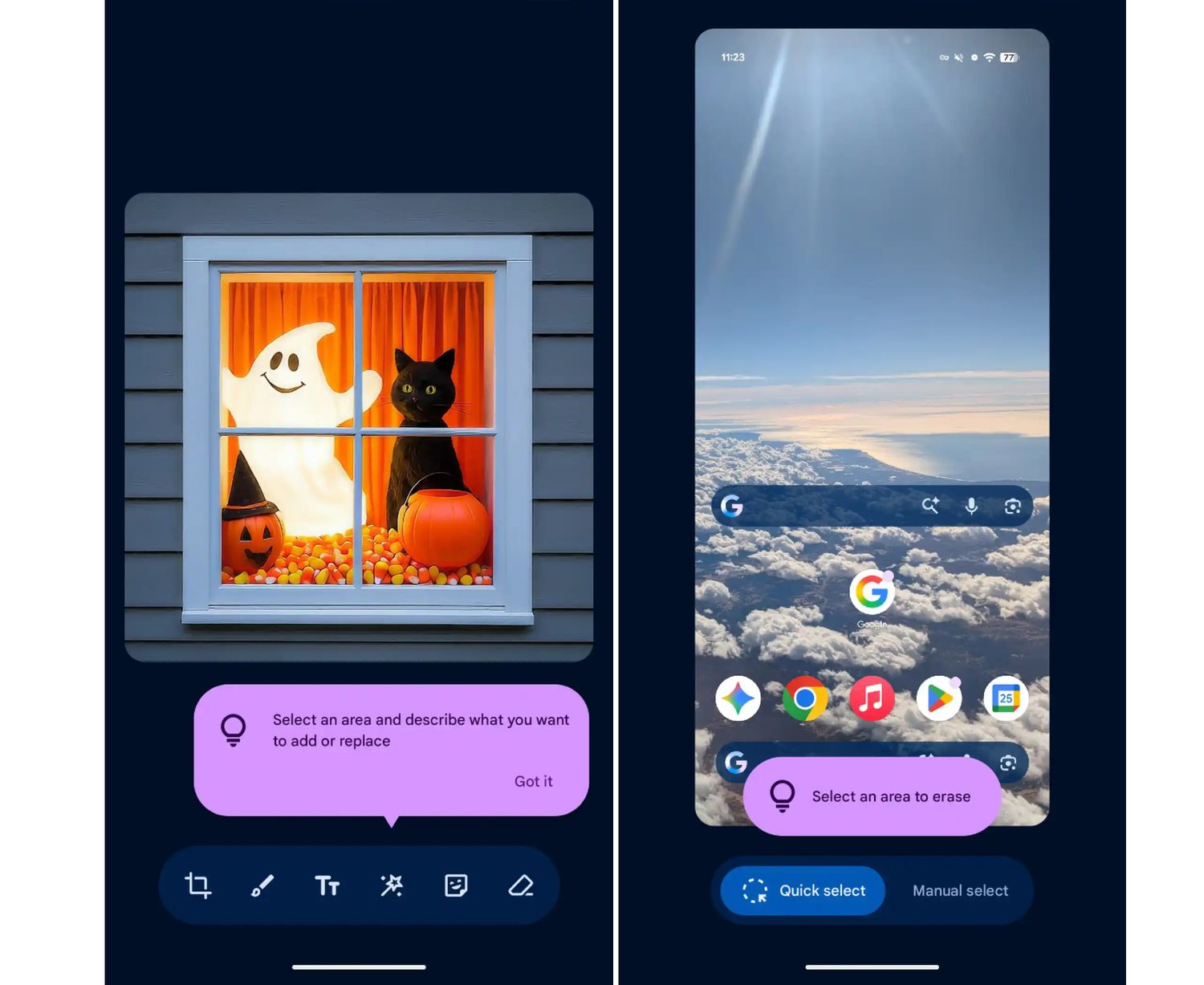 Für die KI-basierte Bearbeitung der Screenshots, der lokalen Bilder oder auch zum Erstellen neuer Bilder sollen die Nutzer nun zu den darauf spezialisierten Apps wechseln. Das wären Nano Banana in der Gemini-App, die starken Bildbearbeitungsfunktionen in Google Fotos oder auch die Bildbearbeitung mit Stickern innerhalb des Messenger Google Messages.