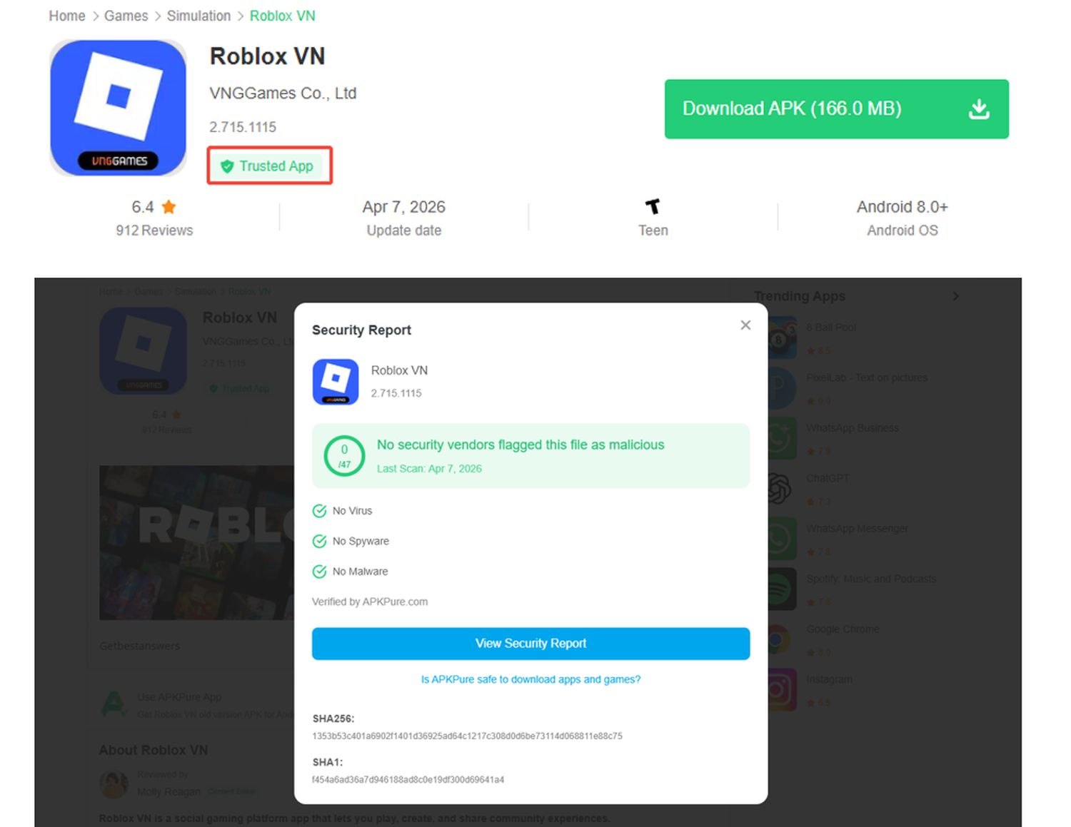 APKPure hat in den letzten Jahren kontinuierlich sein eigenes Sicherheitsframework verstärkt, einschließlich Maßnahmen wie manueller App-Überprüfung, Signaturverifizierung (um sicherzustellen, dass die APK mit der ursprünglichen Entwicklersignatur übereinstimmt), integrierter VirusTotal-Scanning (mit über 70 Virenschutz-Engines) usw. Drittanbieter-App-Stores haben grundsätzlich einige kleinere Sicherheitsprobleme, aber im Vergleich dazu erlaubt APKPure den Nutzern, Selbstkontrollen durchzuführen, stellt Informationen relativ transparent dar und gibt den Nutzern so ein sichereres Gefühl.