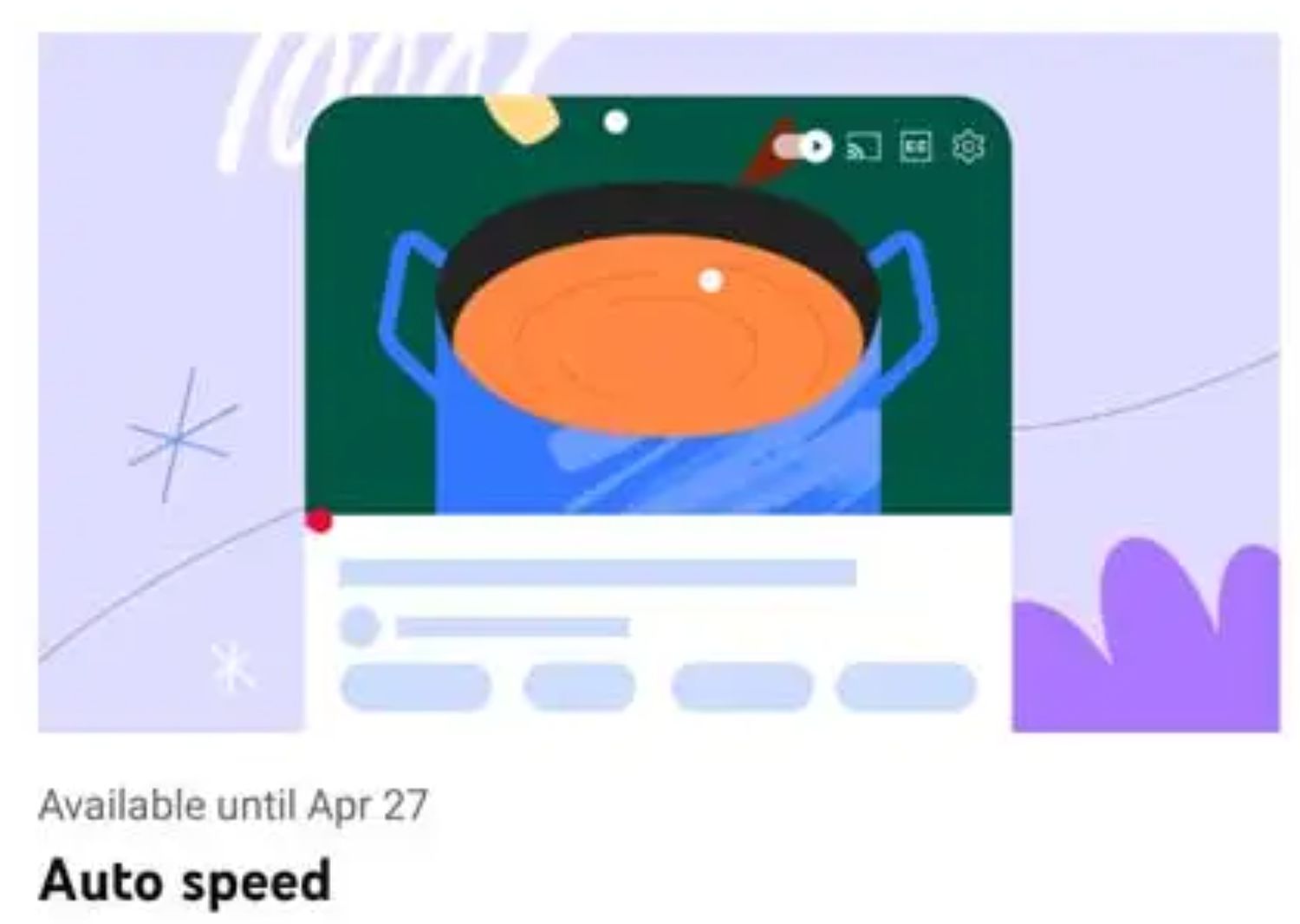 Mit der Funktion Auto Speed soll sich die Geschwindigkeit eines Videos automatisch anpassen, während der Nutzer es ansieht. Das soll Zeit sparen und gleichzeitig dafür sorgen, dass die Zufriedenheit mit den Videos steigt – vor allem für langatmige Stellen. Auto Speed soll einen neuen Schalter im Player erhalten, der sich aktivieren oder deaktivieren lässt. Standardmäßig ist es nach Aktivierung der experimentellen Funktion aktiviert.
