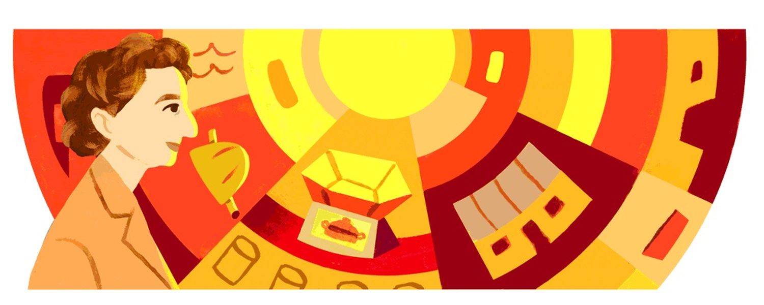 Mária Telkes mit einem sehr schönen animierten Doodle, das ihren wichtigsten Forschungsbereich zeigt: Die Solarenergie. Mária Telkes hat intensiv an der Solarenergie geforscht und daran geglaubt, dass diese neue Energieform das Leben der Menschen verändern kann - und sie sollte Recht behalten. Ihre Forschung hat ihr den inoffiziellen Titel der "Sonnenkönigin" eingebracht.
